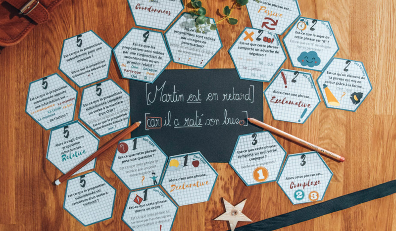 Bonjour bonjour ! Depuis quelques années, j’ai commencé à créer des jeux et des ateliers de manipulation pour pratiquer la langue . Des dizaines de jeux que je laisse en classe à disposition (je vous en ai d’ailleurs partagé que très peu…) et que nous utilisons lors de séances dédiées. Cependant, je remarque de certains élèves n’en sont pas encore au stade de la pratique… certaines notions nécessitent tout simplement d’être comprises et maîtrisées . Aussi, depuis peu, j’expérimente des ateliers d’identification et de compréhension . C’est le cas de ces cartes d’identification autour de la phrase que je vous propose aujourd’hui !
