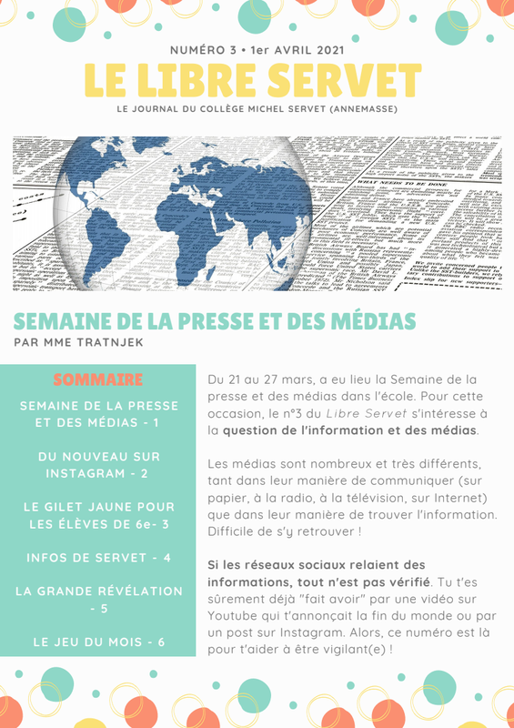 Le Libre Servet n°3 (1er avril 2021) : Semaine de la Presse et des Médias à l'École