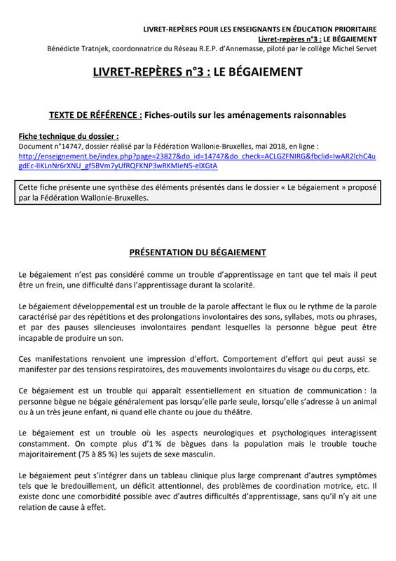 Livret-repères n°3 : Le bégaiement