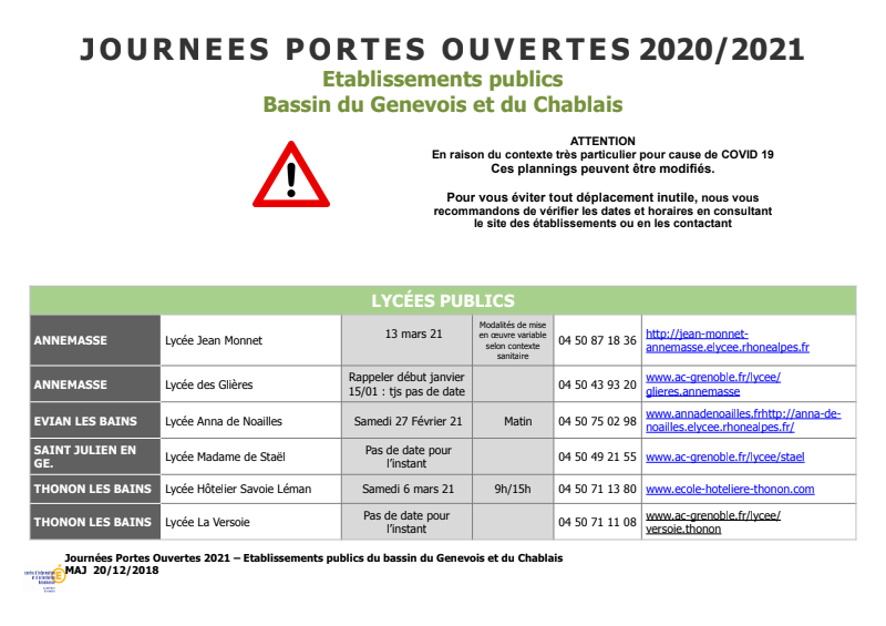 Journées Portes Ouvertes 2020-2021 Bassin genevois et Chablais