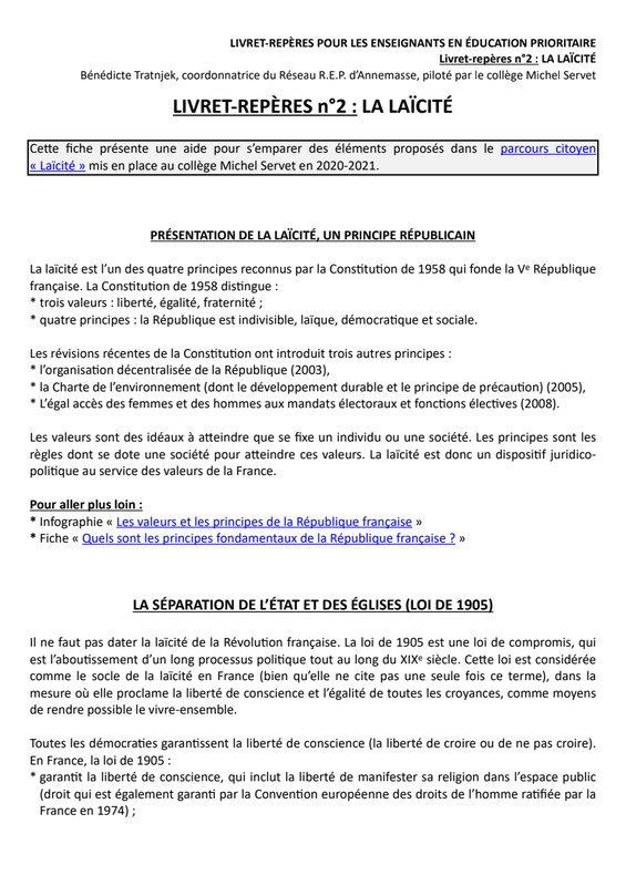 Livret-repères n°2 : La laïcité
