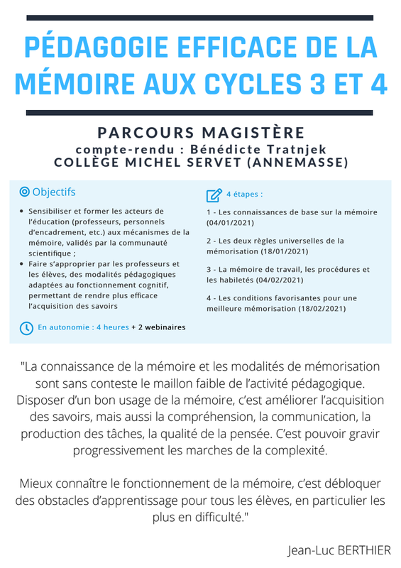Compte-rendu de la première partie du Magistère "Pédagogie efficace de la mémoire aux cycles 3 et 4"