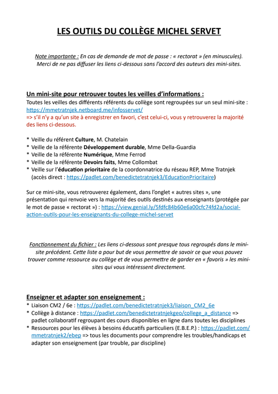 Fiche-outil : tous les outils du collège Michel Servet